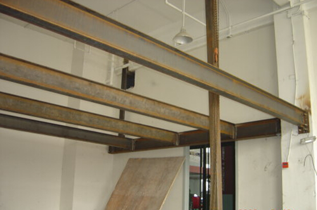 主梁在夾層工程中是安全關(guān)鍵之二,如果一顆樹根基再好而樹干不能承受外力也是枉然,主梁的選擇和屋面的承載,跨度是有直接關(guān)系的,如果跨度小就可以選用工字鋼,或H型鋼,鋼梁選好后要進(jìn)行打磨除銹,切割,底漆等處理,到現(xiàn)場后測量兩端錨固在進(jìn)行細(xì)切,夾層工程和其他鋼構(gòu)工程不同,多數(shù)梁檁的長度都是不定長度的,所以實(shí)測后在切割,如果跨度小就盡量選用型鋼,因?yàn)橄湫土罕仨毢附樱靸r(jià)高,重量大,吊裝運(yùn)輸困難.