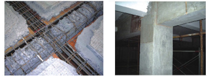 增大截面加固是增大原構(gòu)件截面面積并增配鋼筋,以提高構(gòu)件的承載力和剛度的一種直接加固方法,其結(jié)構(gòu)可靠性好,構(gòu)件承載力、剛度提高幅度大,增加結(jié)構(gòu)穩(wěn)定性好。梁、板、柱增加截面厚度比較小,砼強(qiáng)度要求比較高,采用混凝土澆搗其質(zhì)量很難保證,一般采用高強(qiáng)無(wú)收縮灌漿料。高強(qiáng)無(wú)收縮灌漿料是一種以水泥為膠結(jié)材料,配以復(fù)合外加劑和特制骨料,現(xiàn)場(chǎng)加水?dāng)嚢韬蠹纯墒褂,具有無(wú)收縮、強(qiáng)度高、大流動(dòng)、施工方便等優(yōu)點(diǎn)。